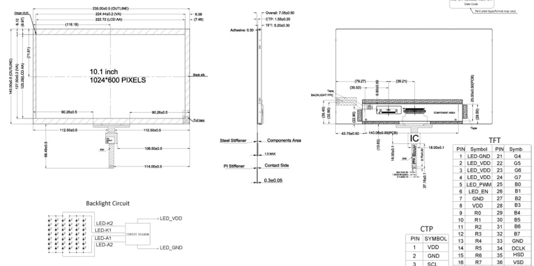 Ukuran ramping mung 235mm × 143mm × 7.05mm nggawe cocog kanggo piranti kompak. Didhukungake kanthi 3.3v lan nggunakake kabel FFC 40-pin (6-pin FFC kanggo CTP), 10.1 inchi Industrial Tutut Tutorial berutasi saka suhu saka -30 ° C lan njamin operasi sing bisa dipercaya sanajan ing lingkungan sing bisa dipercaya.